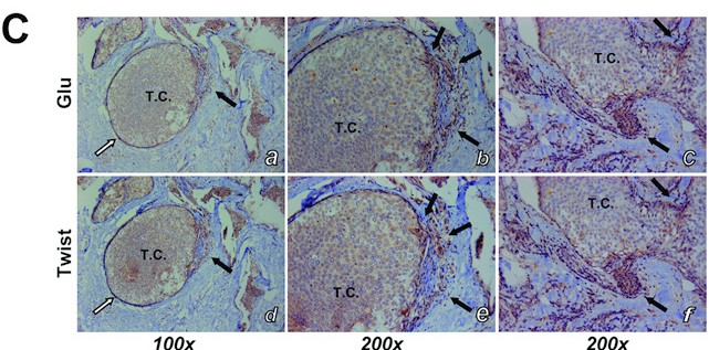 Whipple, R.A., et al (2010). Cancer Research70(20):8127-37 EMT and Glu-tubulin are upregulated at invasive tumor fronts in breast cancer patients