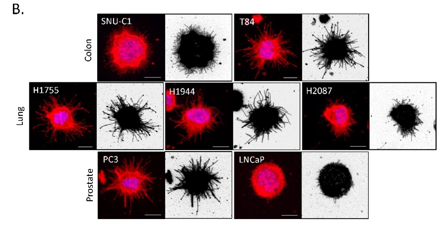Whipple, R.A., et al (2010). Cancer Research70(20):8127-37 (Cover). – Collaboration with Jing Yang (UCSD)Live cell confocal microscopy of McTNs in mammopsheres